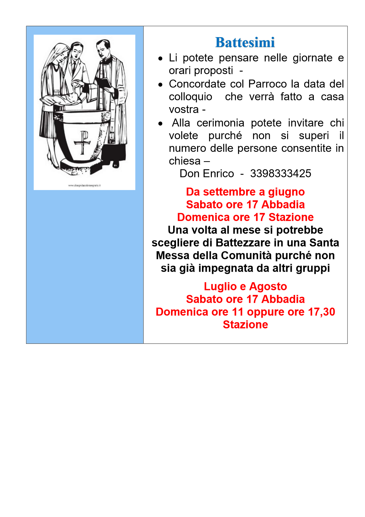 - il quarto giovedi’ alle ore 17,30 l’ADORAZIONE EUCARISTICA ed a seguire il S.Rosario e la S.Messa